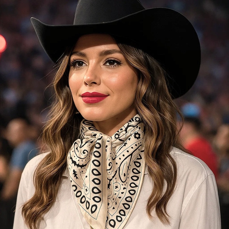 Our classic wild rag/scarf in cream and black with a simple paisley pattern. A perfect square - measuring 35"x35". Adding that extra touch of a western style to your outfit.100% soft silky feeling polyester is durable to keep you warm in the cold and fashi