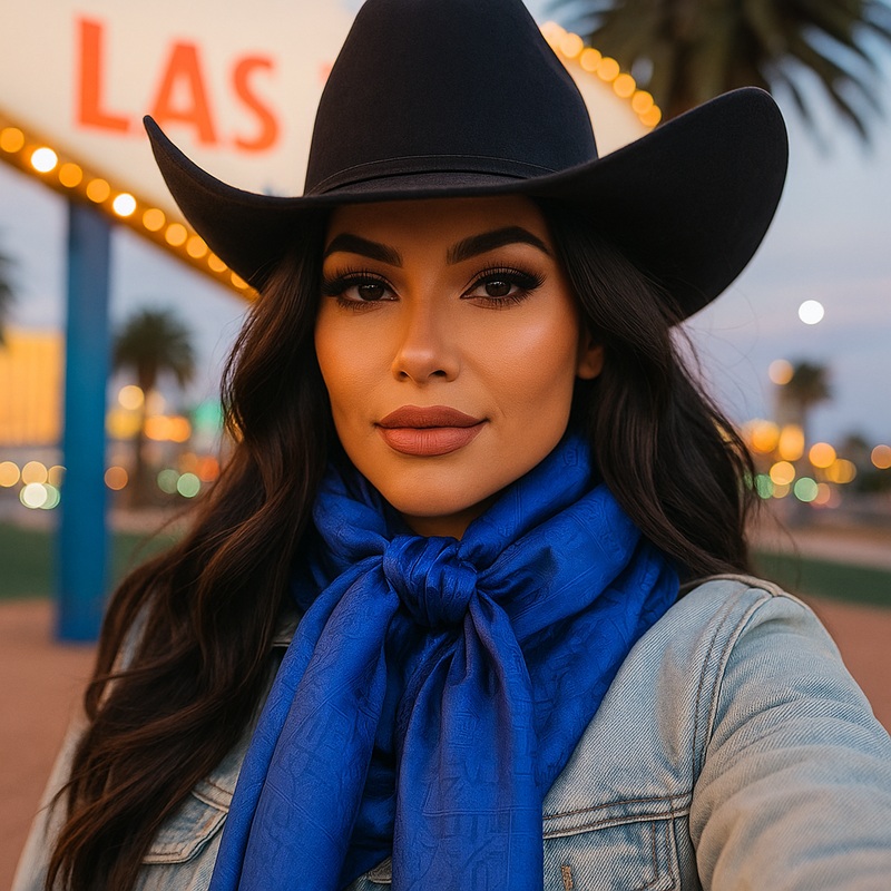 Our elegant wild rag/scarf in cobalt with Southwest pattern.A perfect square - measuring 42"x42". Adding that extra touch of a western style to your outfit.100% soft silky feeling polyester is durable to keep you warm in the cold and fashionable for any oc
