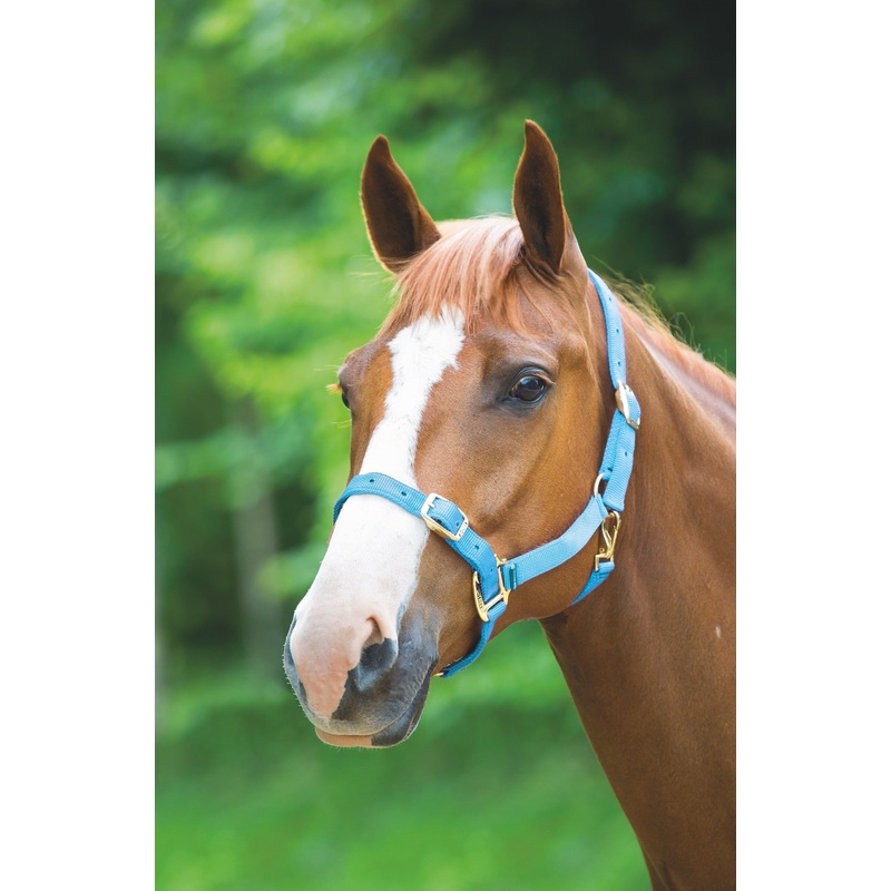 Adjustable at the head and nose, this headcollar benefits from a clip-on throatlash. Double layer nylon webbing with brass coloured buckles.