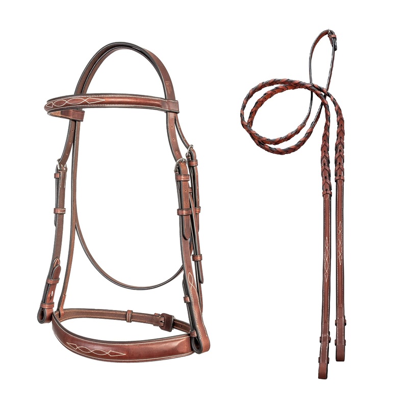 The bridle comes complete with Raised Fancy Laced reins.Available in Brown.