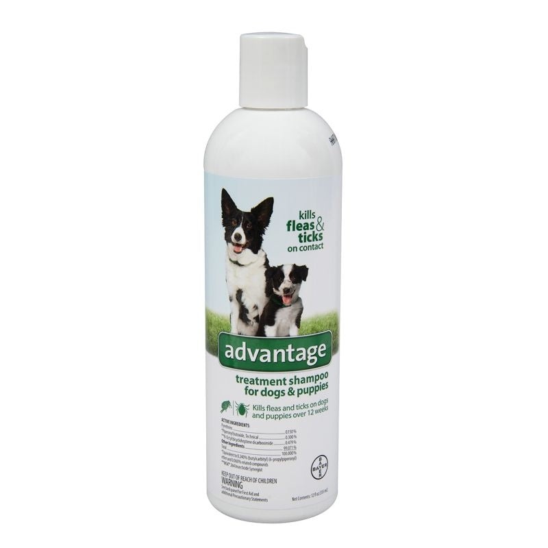 Advantage Treatment Shampoo for Dogs & Puppies Advantage Treatment Shampoo is specifically formulated for dogs and puppies over 12 weeks old. It works on contact to kill fleas and ticks. The unscented formula is ideal for pets as well as pet owners that ar