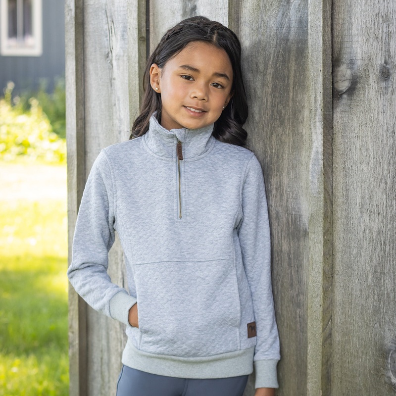 The Aerion Adelia Quilt Top is now available for kids! Exclusive to Greenhawk, this 1/4 zip top is soft, comfortable, and versatile. Great for pairing with breeches and features a quilted design with a front kangaroo pocket and faux leather zipper pull.Exc