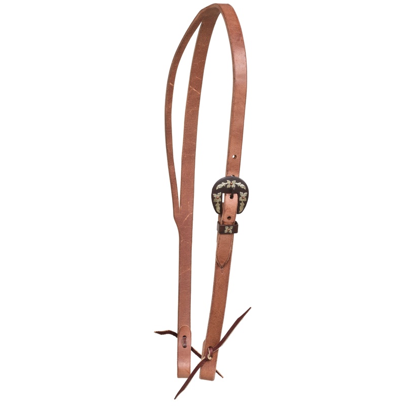 The AJ Tack Split Ear Headstall is expertly crafted with Hermann Oak harness leather for durability and long-lasting performance. Designed with a classic split ear for a secure and comfortable fit, this headstall is perfect for everyday riding or the show pen. The brown iron buckle with floral accents adds a stylish, rustic touch to this essential piece of tack.