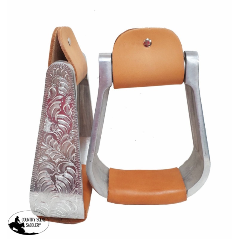 2 1/2" engraved Aluminium Visalia Stirrups(61452)Instock In Australia