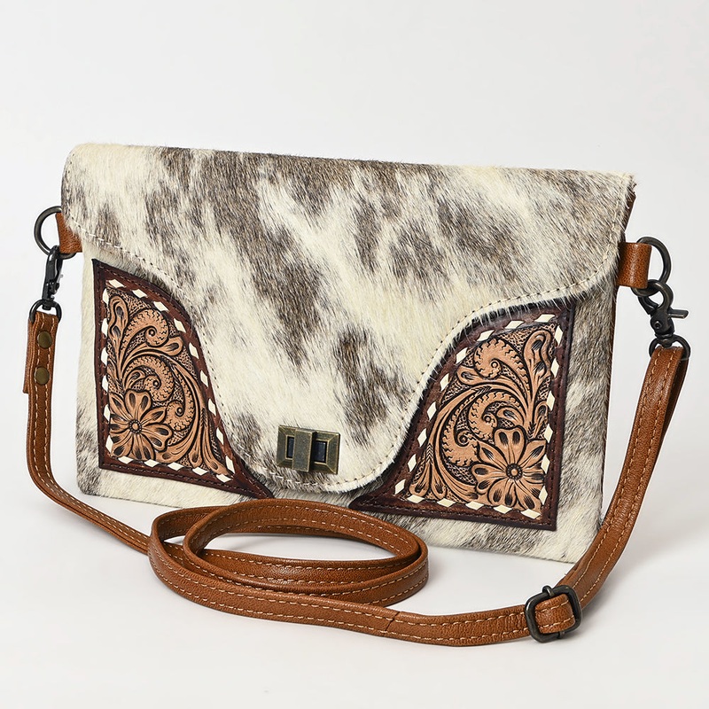 American Darling Adbg1497 Envelope Hand Tooled Hair-On Genuine Leather Women Bag Western Handbag Purse