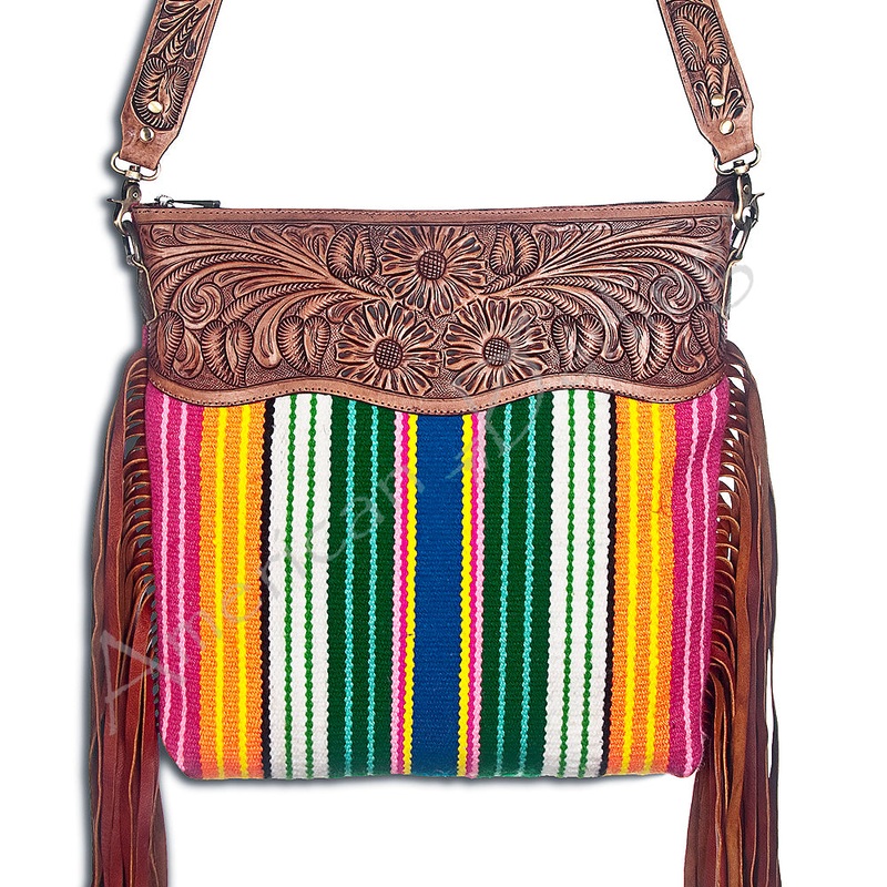 American Darling ADBGZ110R Signature Crossbody Hand Tooled Saddle Blanket Genuine Leather Women Bag Western Handbag Purse