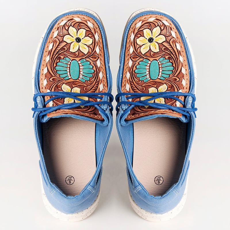 American Darling ADFT133BL5 Hand tooled carved genuine leather trim lightweight shoe footwear slip on