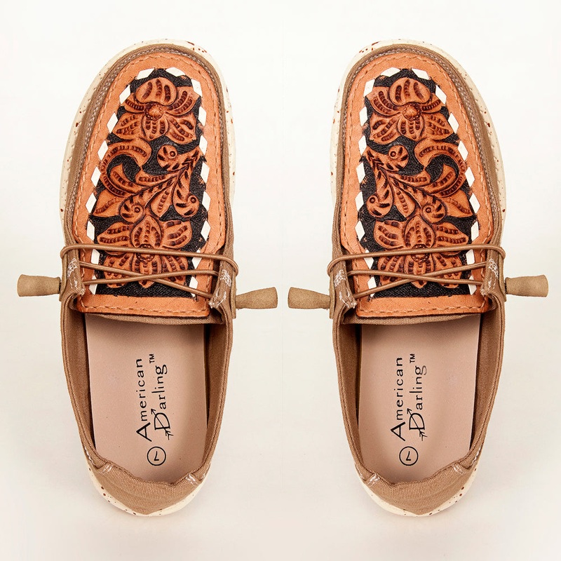 Specially designed Light weight highly comfortable moulded soleElevate your style with American Darling’s hand-tooled, carved genuine leather slip-ons. These lightweight shoes seamlessly blend craftsmanship and comfort, offering a chic and easy-to-wear footwear solution for any occasion. Step into sophistication with every stride.