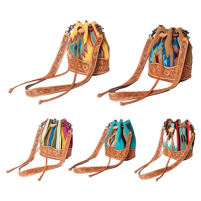PREMIUM QUALITY MATERIAL: This is a handmade American Darling women’s Bucket Bag made with hand-weaved woolen saddle blanket fabric that gives it a traditional Western yet trendy and elegant look. High Quality Soft and supple vegetable full grain genuine leather and Hand Tooled leather are also used to make this handbag that ages beautifully as it wears. These Bucket bags are perfect for outdoor events, travel, or even daily use. Available in size: 11in (H) X 10in (W) X 6in (D)