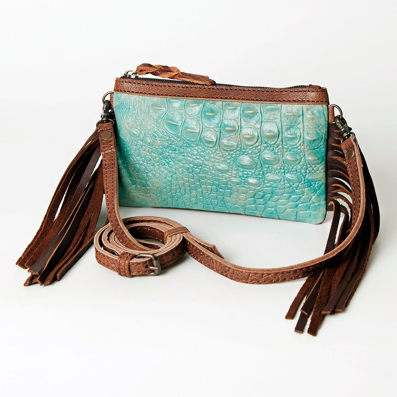 • PREMIUM QUALITY MATERIAL: This is a handmade American Darling women’s crossbody bag made with Crocodile Embossed genuine leather that gives it a traditional Western yet trendy and elegant look. High Quality Soft and supple vegetable full grain genuine leather is also used to make this crossbody bag that ages beautifully as it wears. Our crossbody bags are complemented with a beautiful leather fringe giving it a western look. Available in size: H4.5 X W8.5.