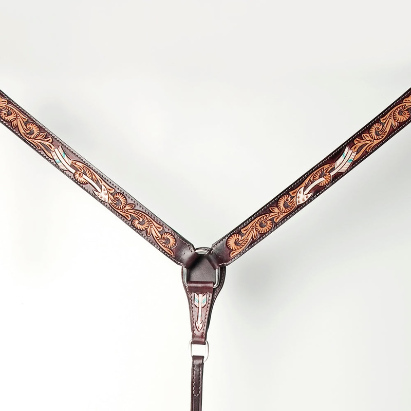 Handcrafted with meticulous attention to detail, our breast collar features exquisite Western-inspired accents that exude timeless charm and rugged elegance. The rich, supple leather not only ensures long-lasting performance but also molds comfortably to your horse’s contours for a secure and personalized fit.