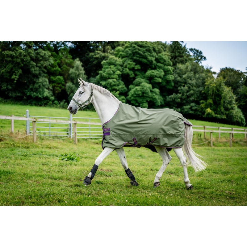 Horseware Amigo Hero 600D RipStop Plus 100g Turnout Blanket Strong and durable 600D ripstop polyester outer that is waterproof and breathable. Shine enhancing polyester lining prevents rubbing. Classic cut neck with dual straight surcingle front closures.