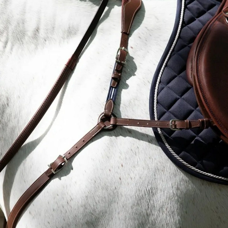 Horse BreastplateDescription:Antares' bridle-work line showcases exceptional craftsmanship, crafted from premium French full-grain leather carefully chosen and developed in collaboration with the esteemed tannery Arnal in Rodez, France. The hides undergo s