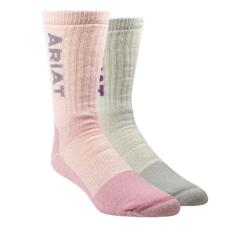 AR2908 Ariat Women’s Midweight Merino Wool Blend Steel Toe Work Sock 2 Pair Pack – Pink/Oatmeal