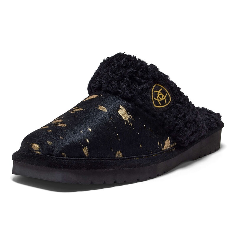 Ariat Women’s Jackie Square Toe Slipper in Black & Gold Hair On