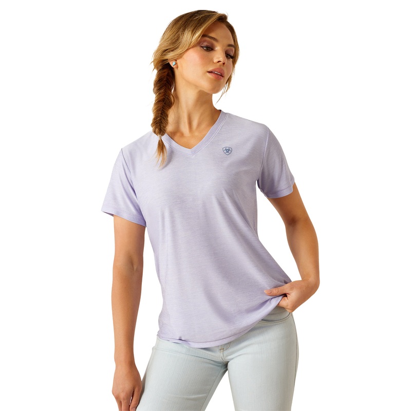 A comfortable and casual tee for everyday wear. Pairs with breeches or jeans and features Ariat logo branding and a v-neck front. Made from 100% polyester melange jersey.Polyester melange jersey teeV-neck frontAriat logo branding