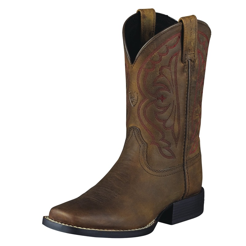 Full-grain leather Brushed synthetic lining TPR outsole Four-row stitch pattern Double-stitch welt Ariat Booster Bed