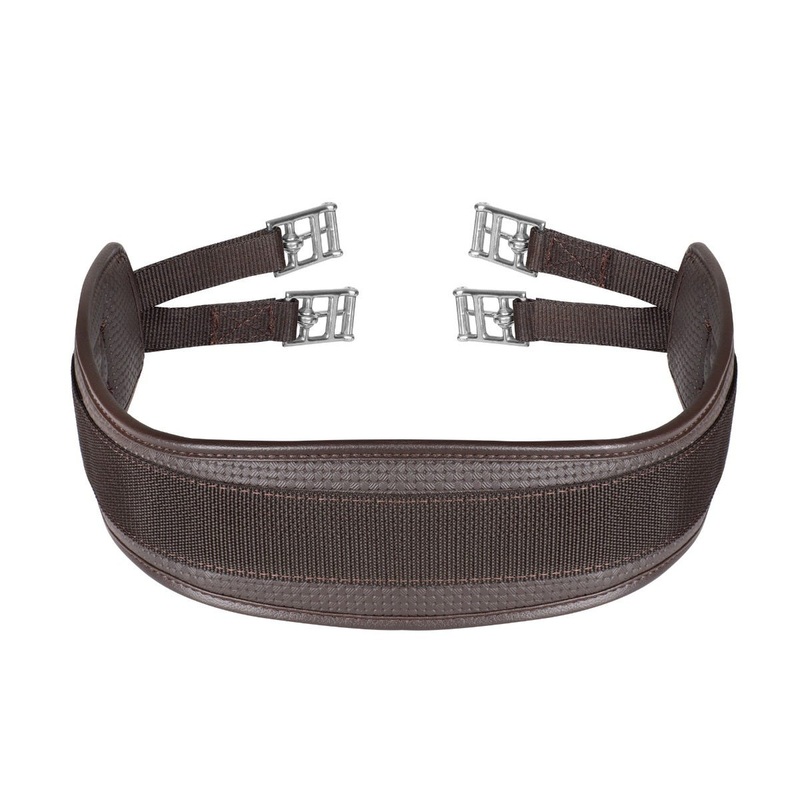 The ARMA anti-chafe humane girth is made from durable waffle material that resists moisture build up to protect against rubbing and galls. The textured surface reduces friction and drag allowing the girth to glide smoothly and allows airflow to help control excessive sweat build up. Moisture resistant fabric stays soft and flexible. Anatomic contour shaping provides unrestricted movement around the elbows and increased support under the belly. Flexible, stretch resistant and wipe clean, reinforced with non-stretch nylon webbing. The double D system allows even distribution of weight to help reduce pinching and uneven pressure, making a very comfortable girth. Stainless steel fittings for long lasting performance.