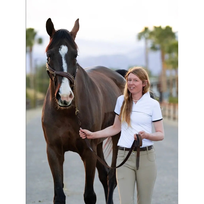 The Ultra Breathable Monochrome Short Sleeve Show Shirt is made with buttery soft, perforated, anti microbial, sweat wicking fabric that moves with you. Includes a cotton stand up collar that offers a polished look at full zip in any show ring (hunters, jumpers, eq, or dressage) or unzipped for a more casual day to day look. The look is finished with contrasting color piping at the sleeve cuff and across the chest. The top chest, sleeves and back of shirt are made of a same color perforated breathable mesh that is NOT see through, while allowing lots of air to wick away sweat.