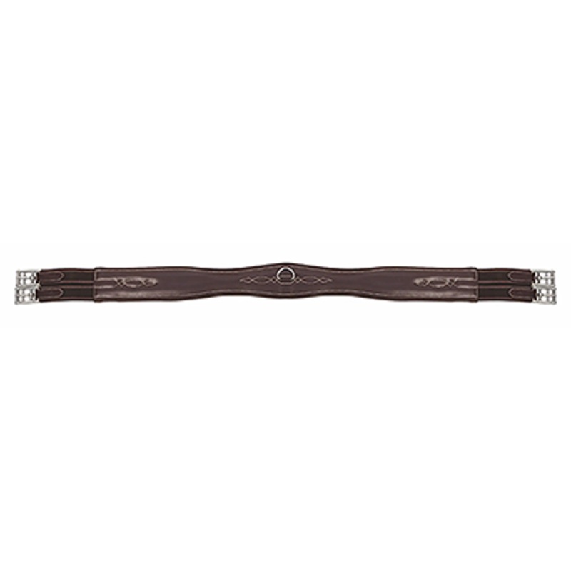 A high quality leather overlay girth with white stitching, strong elastic at both ends and stainless steel fittings.