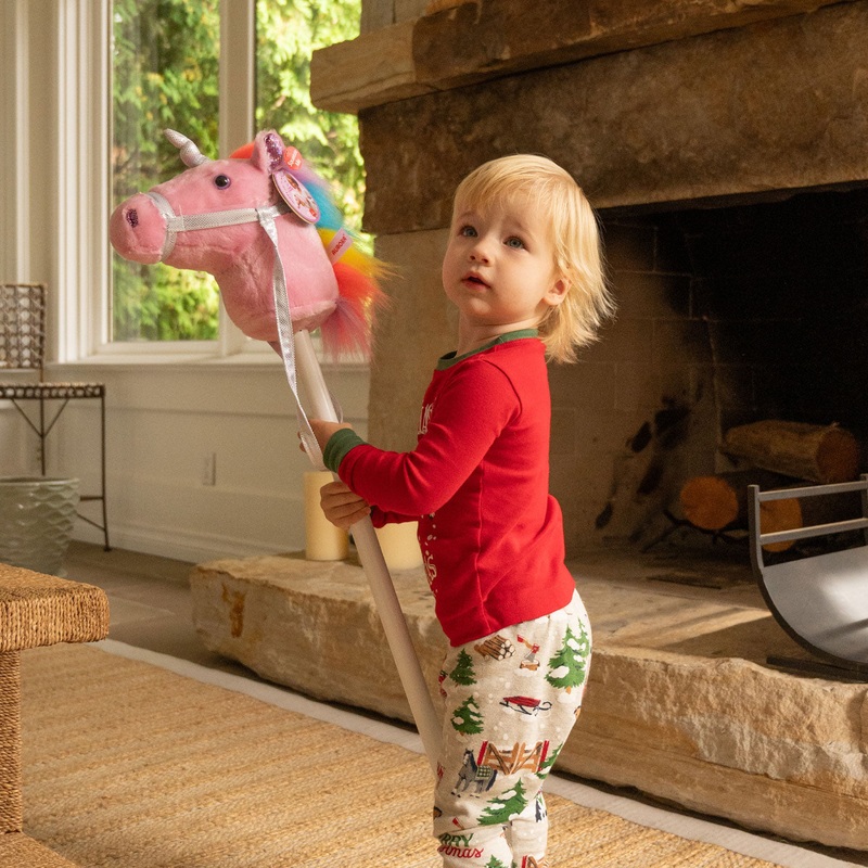 Aurora’s Giddy Up Stick features a unicorn mounted on a stick with luxuriously soft and plush material. A perfect item for kids or anyone who loves horses.