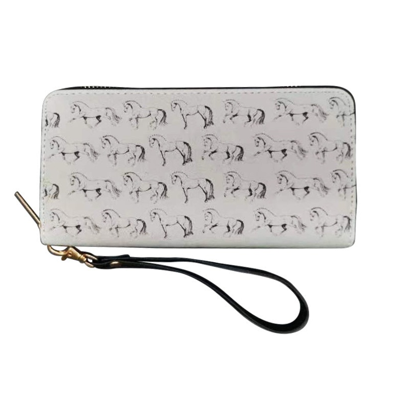 The AWST Int'l Lila Dressage Horses Wallet is perfect for any horse lover! With dimensions of 7.5" x 4.5", this wallet is compact yet spacious, featuring two bill slots, eight credit card slots, and three inside compartments to keep your essentials organiz