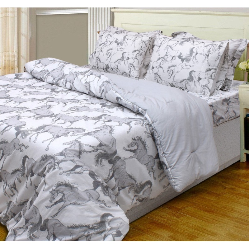 Comforter sets crafted from 100% premium percale cotton for the ultimate level of comfort and luxury. The set includes a generously sized comforter and matching shams for a stylish, cohesive look. Exclusive fabric design by renowned equestrian artist Lila Blakeslee. Easy care machine washable fabric that has been OEKO-TEX Standard 100 tested. 100% cotton outer shell with 100% polyester fiber fill. *Sheet set and Standard Pillowcase sold seperately*