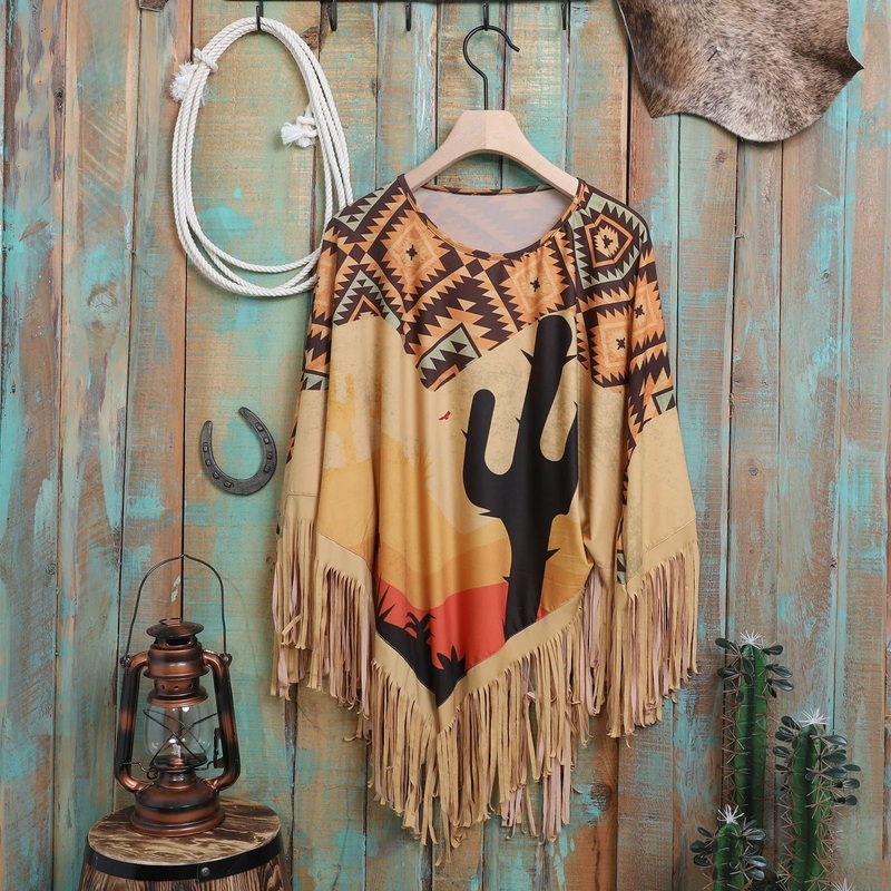 MONTANA WESTSFPCH-1723Fringe PonchoAztec Cactus printSoft and comfortableOne size fit mostFull Length approximately 31"90% Polyester10% Spandex