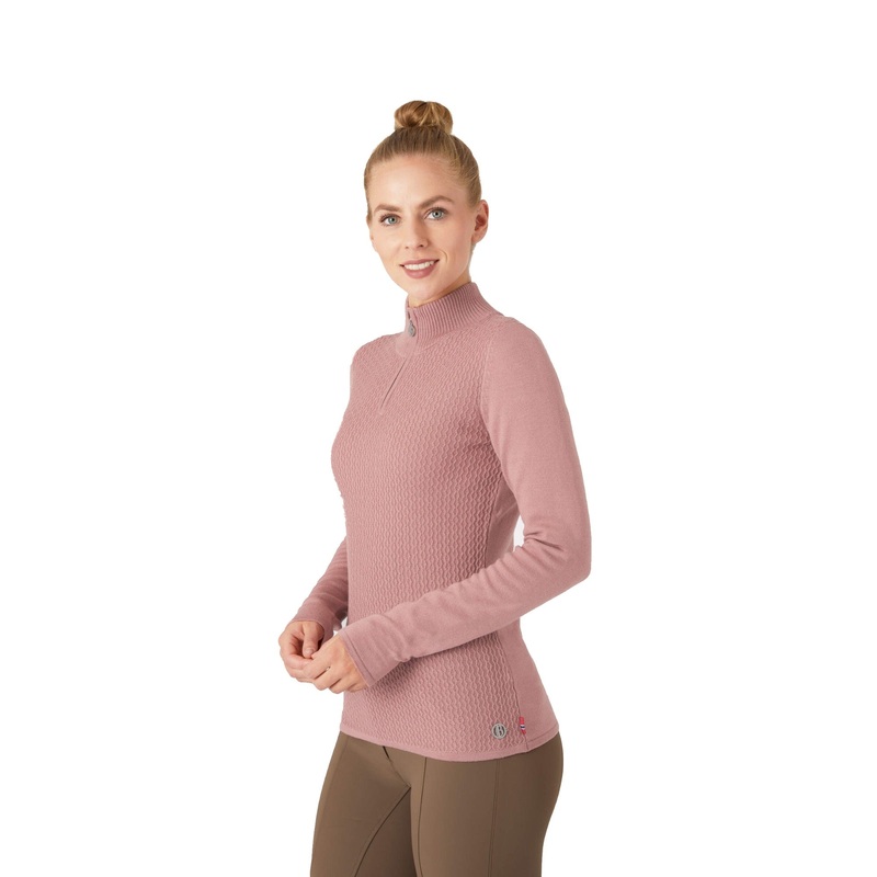This stunning B Vertigo sweater with cable knit will keep you warm all winter long.The knitted B Vertigo Ruth is a classic piece for your riding wardrobe. The soft cable wool mix knit keeps you warm, and the high neck is adjustable with a zipper. It is perfectly combined with a padded vest, and will keep you warm on winter rides.