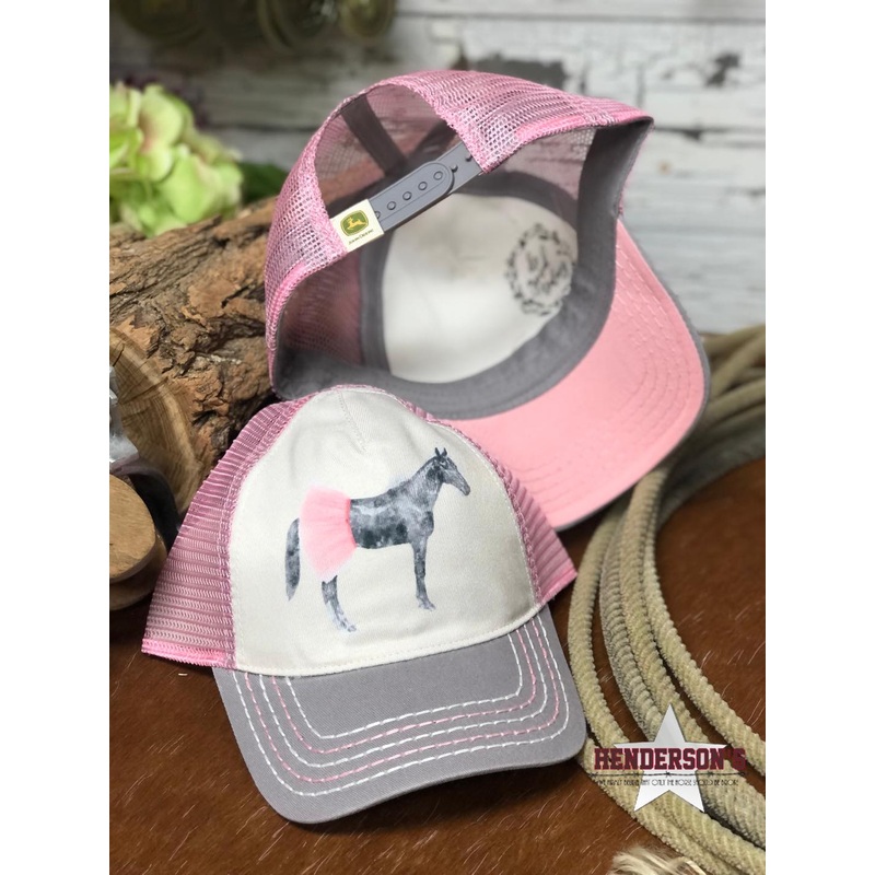 John Deere Trucker Cap for the little farmer, get her this grey and khaki with "Ballerina pony" graphic pinkmesh snap back. Cotton, Polyester.*All Monitors View Colors Differently!Proposition 65 Warning for California Residents.