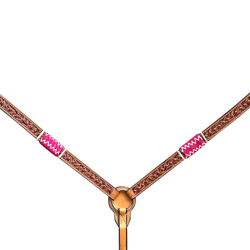 Bar H Equine Horse Genuine Leather Rawhide Stud Breast Collar ,Headstall Tan