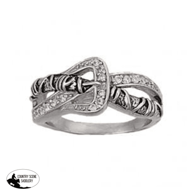 Regular Parcel - Standard Service- $8.95 (ETA: 5 days)Delivery Australia WideTwo bands intertwine through a sparkling crystal ranger buckle frame for a uniquely Western fashion. One band is engraved and antiqued revealing barbed wire detail, contrasting wi