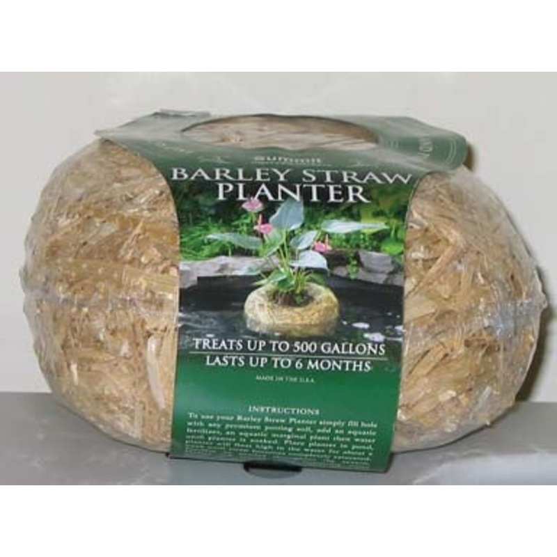 Improve your water quality wit this attractive, floating planter. Barley straw planters act as a natural filter, keeping the water in your pond clean and clear. Will not harm fish or plants, treats pond for 6 months. No danger of koi nibbling. Plant houseplants or other non submersible species in planter and release in pond.