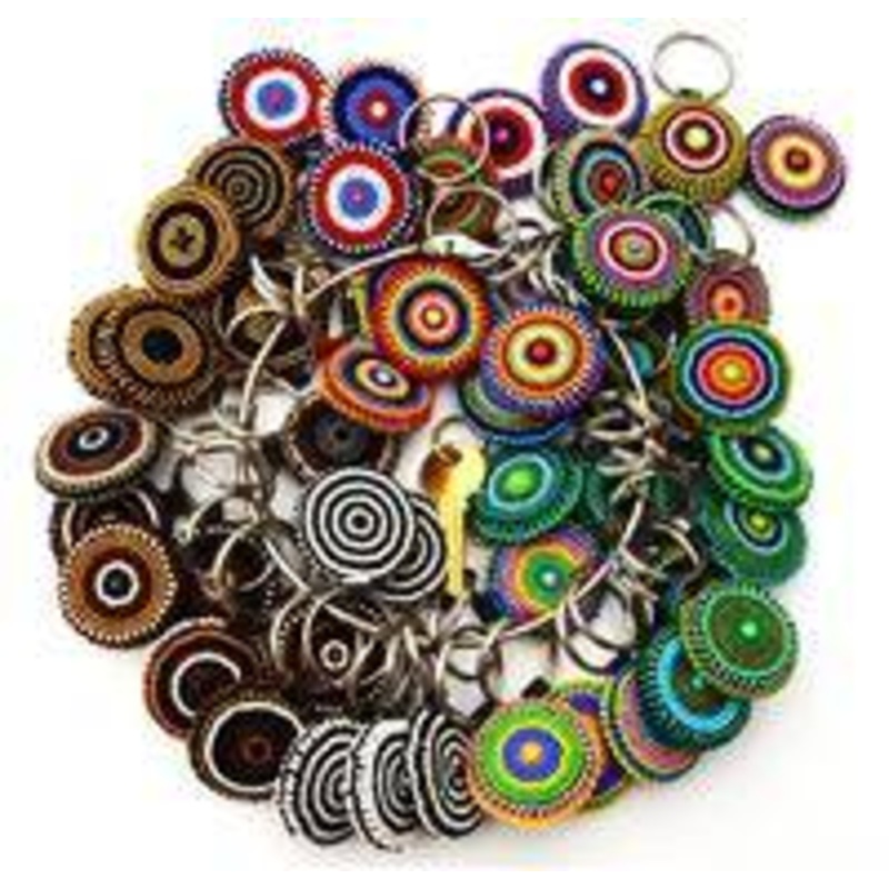 Handcrafted with care by Maasai Mamas in Kenya, each piece is uniquely beaded, ensuring that no two are ever the same. Add a touch of vibrant artistry to your everyday essentials with our Beaded Keychains. Each keychain features a unique beaded disc with a diameter of 1.75 inches and a sturdy ring measuring 1.25 inches. Theyre delightfully light and comfortable to hold, making them a joy to usethough they can handle a hefty load of keys if needed. Each keychain is one-of-a-kind, ensuring that no two are exactly alike.