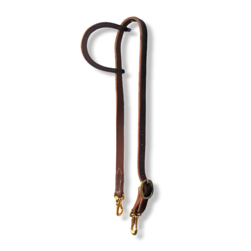 Beagley Hot Oil One Ear HeadstallBrass Snap EndsHot Oil LeatherBrass HardwareIncludes clip for ease of the riderMade in the USA