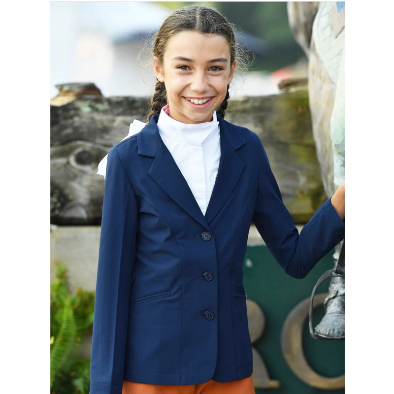The Belle & Bow Featherweight Show Coat will keep kids cool on the warmest of show days. Soft, silky and incredibly lightweight yet durable enough to last through many show seasons! Washes beautifully and tailored to perfection. The ultimate summer show coat.