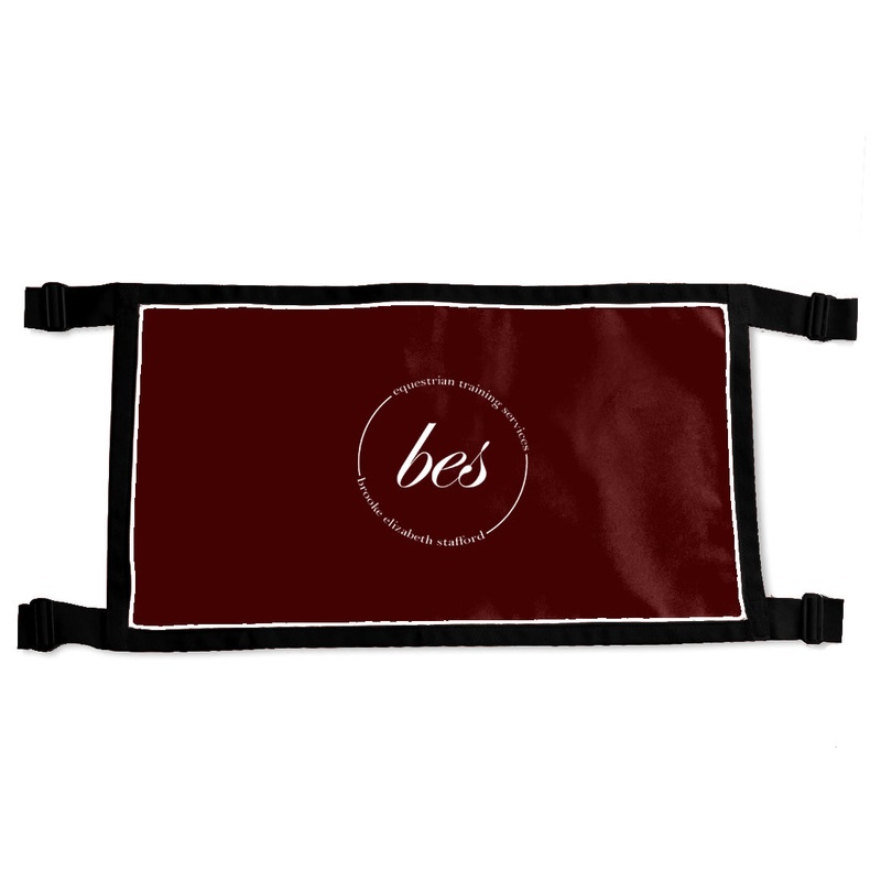 Our stall guards not only provide functionality but are also attractive.Made with our durable Sunbrella material,comes witha heavy duty silverclasp on each corner for hanging. The straps are adjustable in length.Burgundy Base, White Piping, Black binding.L