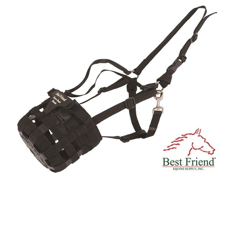Best Friend Have a Heart Muzzle is designed for the "Houdini" horse. Muzzle and halter are together as one. Breakaway feature with thinline padding reduces rubbing.