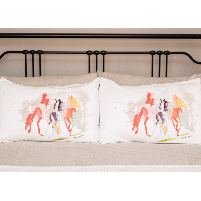 Elevate your bedroom with a fun pop of color and allow yourself to dream about the horse(s) that bring you joy with these beautiful pillow case covers by Bettina Norton featuring her brand new art Three Amigos. Sold in set of 2. Fit standard twin pillows. Pillow inserts not included.