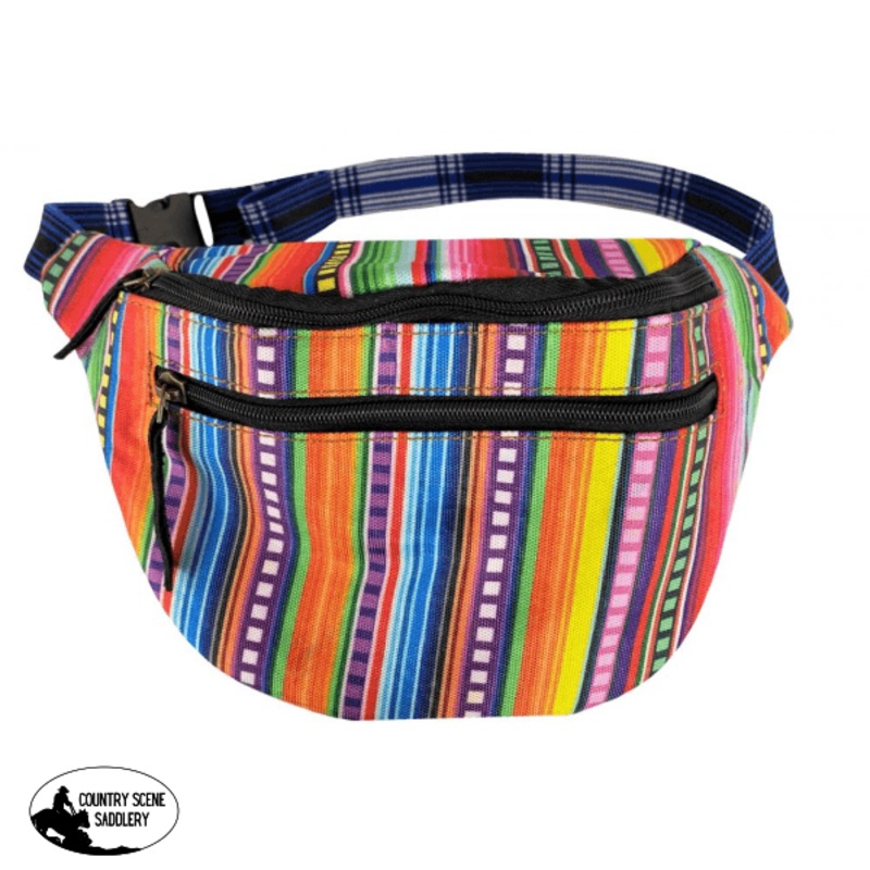 Showman Hip Pack (Fanny Pack) Bag withHair on Cowhidedesign. This bag features 2 zipper compartmentsand an elastic adjustable strap. Measures 7″ tall
