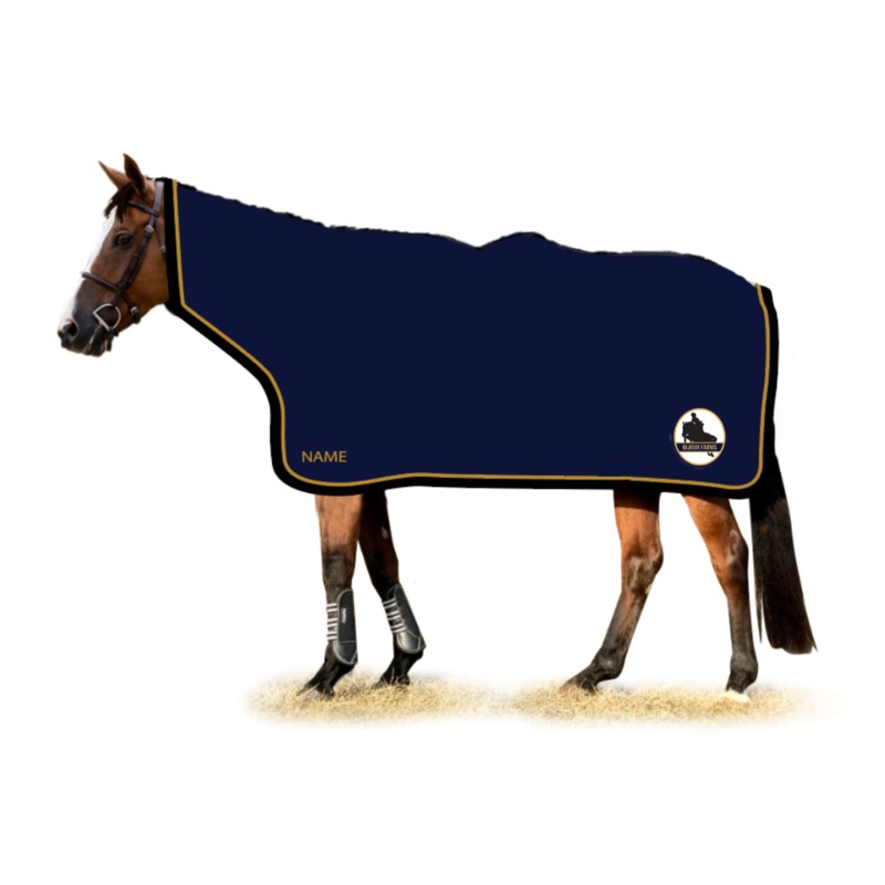 Perfect to take to the show providing excellent protection from the elements. Our Signature high neck rain sheet offers head-to-tail protection.Features: Comeswith a nylon brow bandVelcro closureCotton liningTail strapNavy base, gold piping, black bindingS