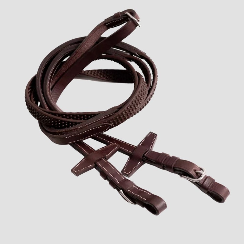 Biothane reins provide a very supple and comfortable grip thanks to the absence of leather inside the rubber, which has been replaced by Biothane. This high-strength material is lighter, finer and more supple. Comfort is optimisedand safety reinforced than