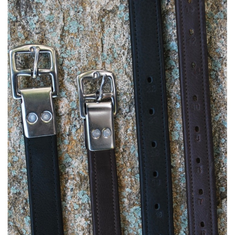 The Black Oak Riveted Calf Lined Leathers feature calf skin leather wrapped over a webbed core for a tactile, yet durable leather. These leathers feature 22 holes placed 1 apart. The Nylon webbing helps these leathers from stretching and they are finished with a riveted buckle.