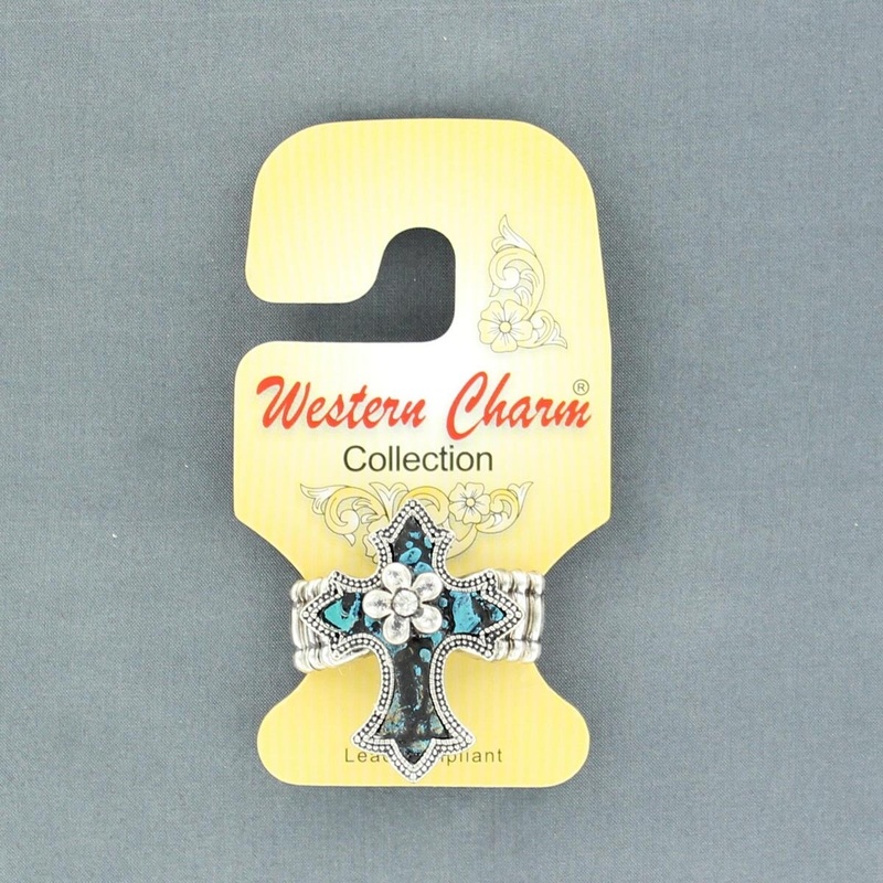 Flaunt your western style. This silver tone and turquoise Blazin Roxx ring by M & F Western Products will look great with your favorite western attire. Made with a stretch design, which is a great way to avoid ring sizing. Enhance your jewelry collection with this beautiful ring.