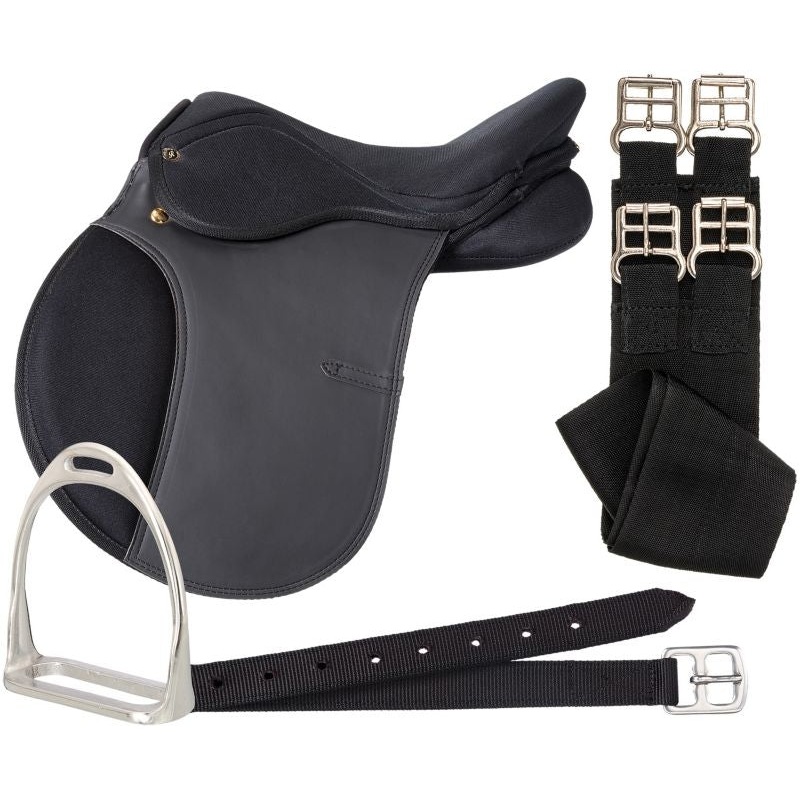 Blemished EquiRoyal Pro Am Youth All Purpose Saddle Package This is a Scratch and Dent Saddle. While it is in excellent condition, it may have cosmetic blemishes which prevent us from selling as new. This is a great packagefor beginnersor anyone looking to save money. Help the young rider develop a good seat with this great value saddle featuring a new deep seated flexible lifetime guaranteed saddle tree for added rider security, superb balance, and positioning. It’s light enough for your child to carry and easy for them to clean and care for. Fitted with rear crupper ring. Package Includes: