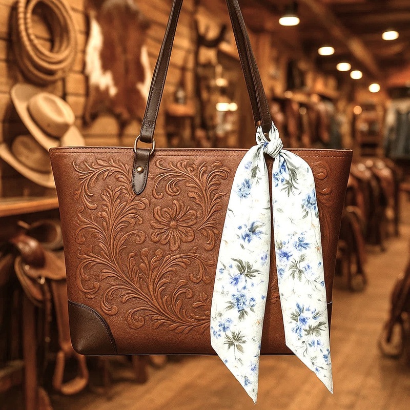 Western-Inspired Skinny Mini Scarf brings a modern twist to the traditional wild rag.Why you'll love it:Blue and green floralLightweight, 100% polyesterCan be used for as a purse wrap, headband, neckerchief and more!Express your western style, dress up any