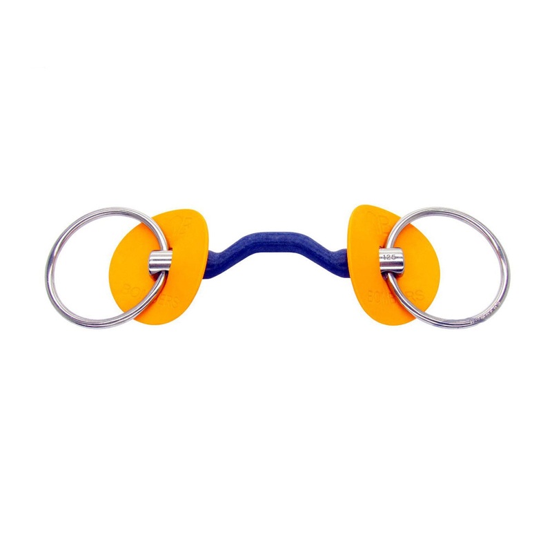 The lightweight rubber nylon compound Bombers Blue mouthpiece from Bombers Bits is ported for tongue relief. This reduces tongue pressure, while applying pressure to the bars of the mouth.This bit may be suitable for horses with large tongues, who find str