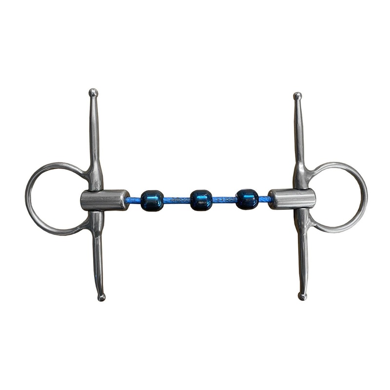 The Bombers Cable Waterford Full Cheek Snaffle Bit features a covered cable with three Waterford ball lozenges.