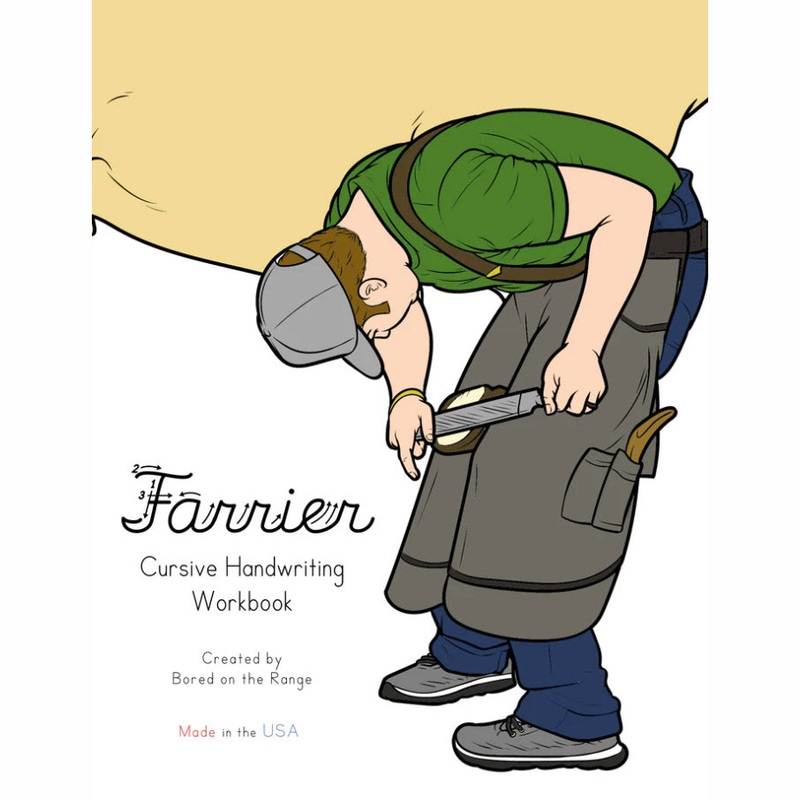 Bored on the Range Farrier: Cursive Handwriting Work Book50 pages of writing practice, activities, and coloring images to help your little farrier learn cursiveAdult assistance may be needed for this workbookBored on the Range creates Western and agricultu