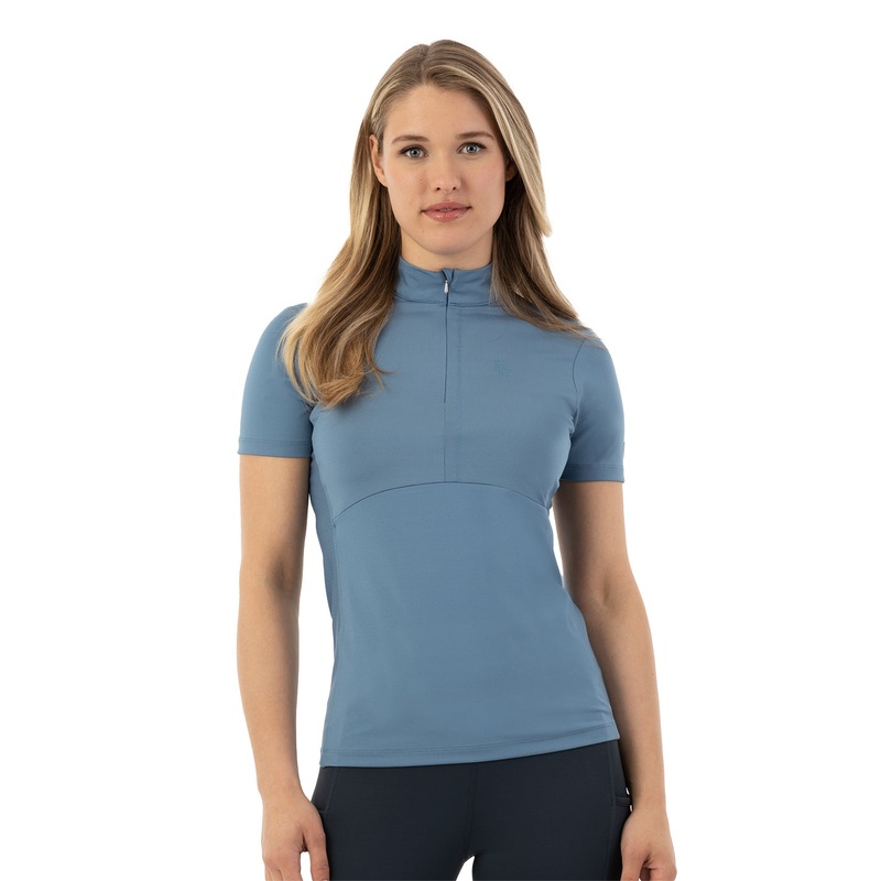 The BR Estelle Half-Zip Short Sleeve Shirt offers comfort and style while training. Features stretchable fabric for the perfect fit with a tone in tone print. Complete with a stand-up collar with half zip closure and mesh side panels.